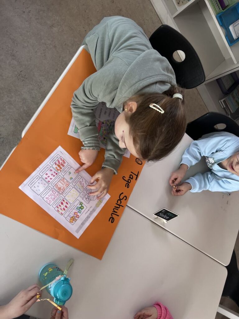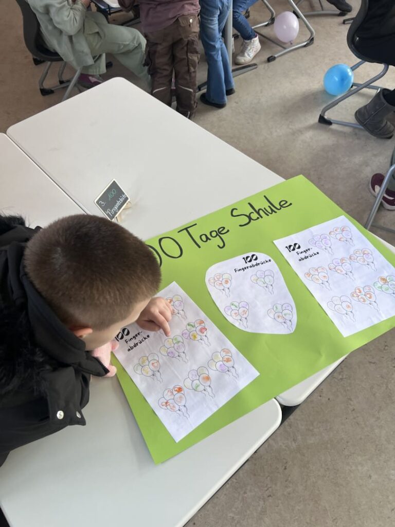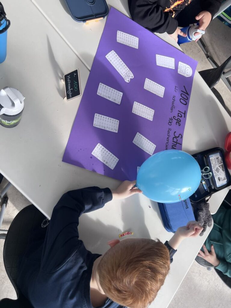 Das musste natürlich gefeiert werden. Egal ob in Deutsch, Mathe, Sport, Kusnt oder in der Frühstückspause: heute drehte sich alles um die Zahl 100: