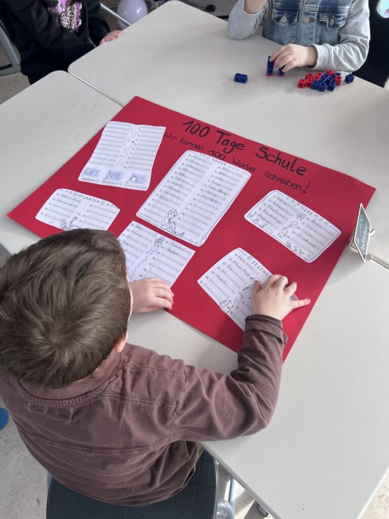 Kaum zu glauben, aber wahr: Heute waren unsere Erstklässler bereits 100 Tage in der Schule. Von der Einschulung an haben sie jeden Tag fleißig die Schultage gezählt und dann war es endlich soweit.