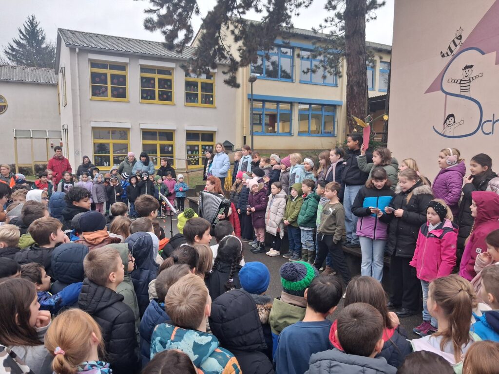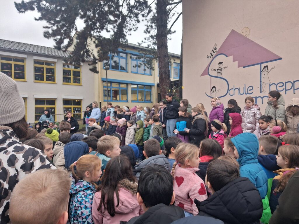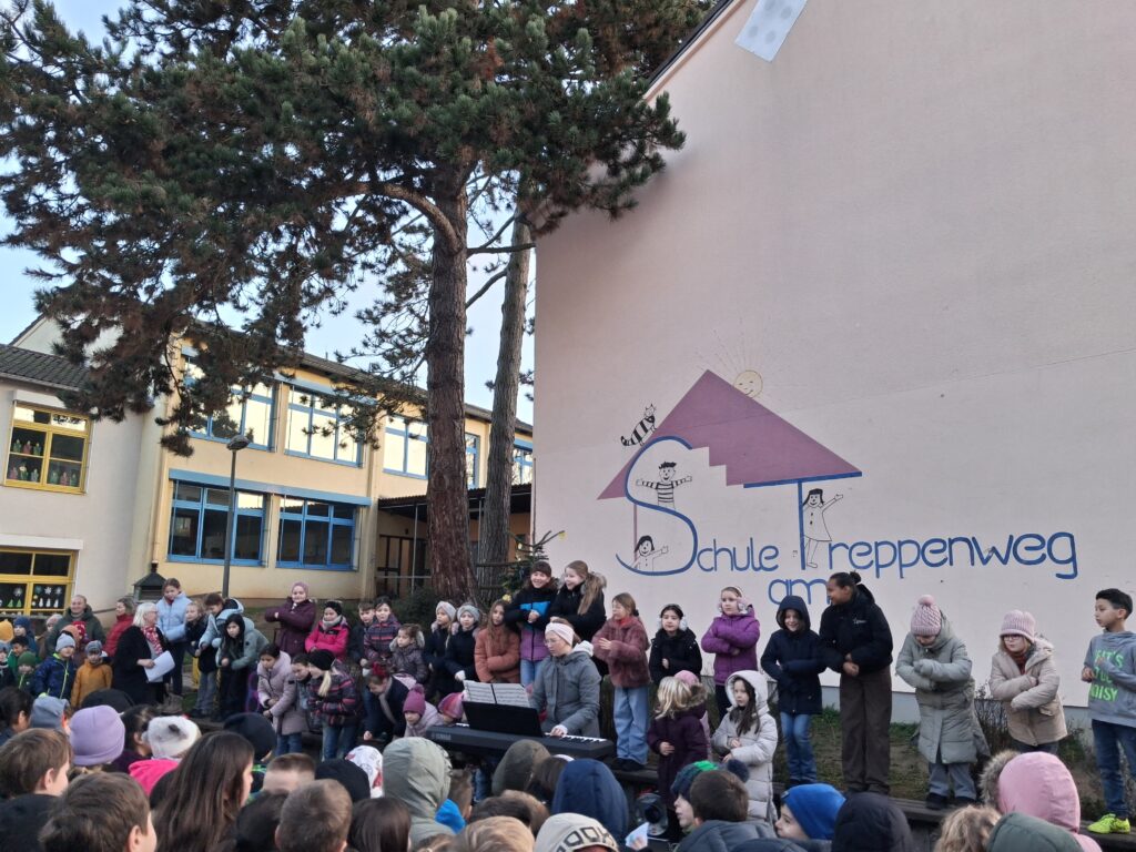 An den beiden folgenden Montagen im Advent trafen sich die Kinder der Schule am Treppenweg mit ihren Lehrerinnen und Lehrern wieder auf dem Pausenhof, um gemeinsam Weihnachtslieder zu singen.