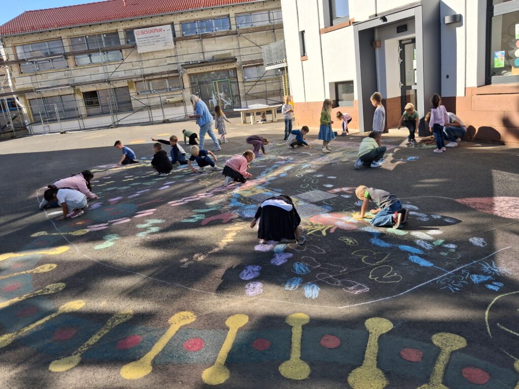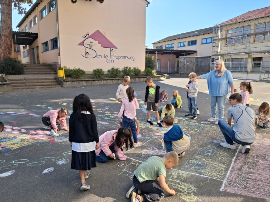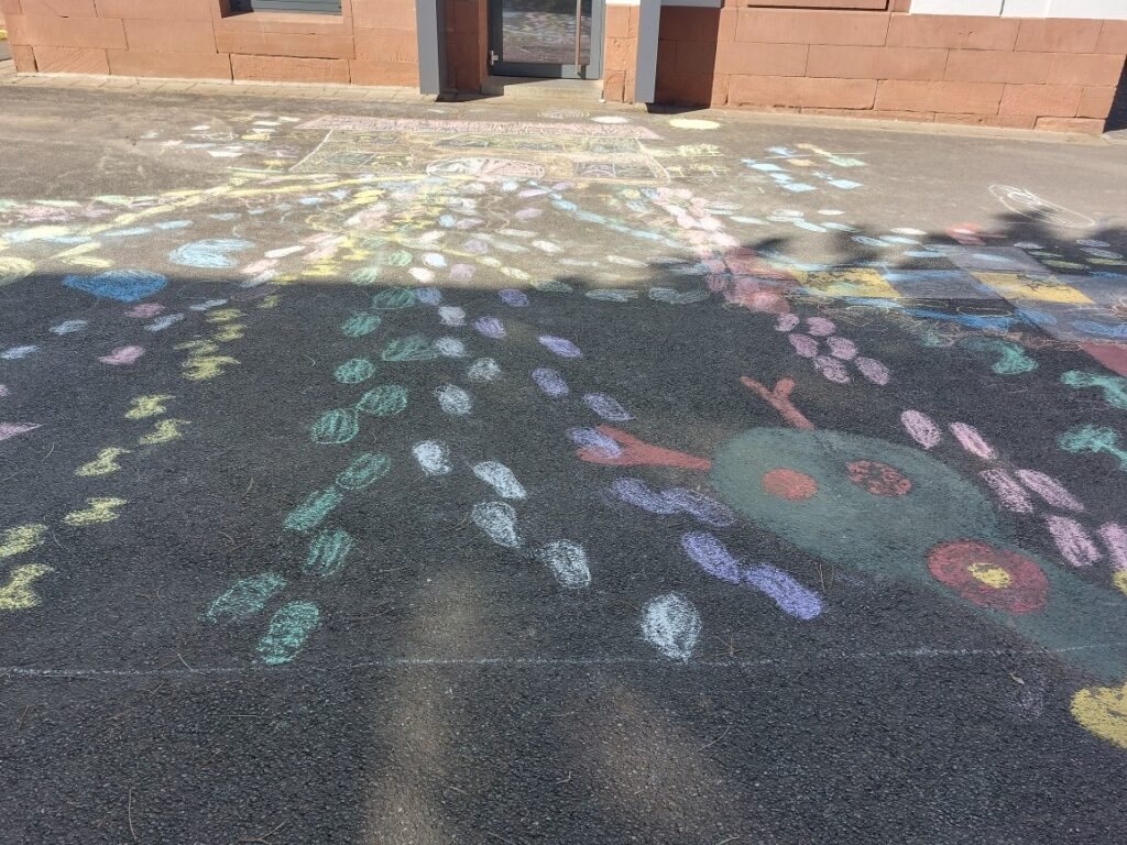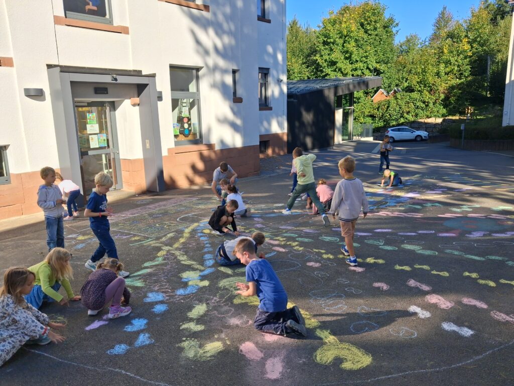 Eine Klasse bemalte zum Beispiel den Schulhof mit vielen Fußspuren, die symbolisch zeigen sollten, dass die Kinder zu Fuß zur Schule kommen wollen.