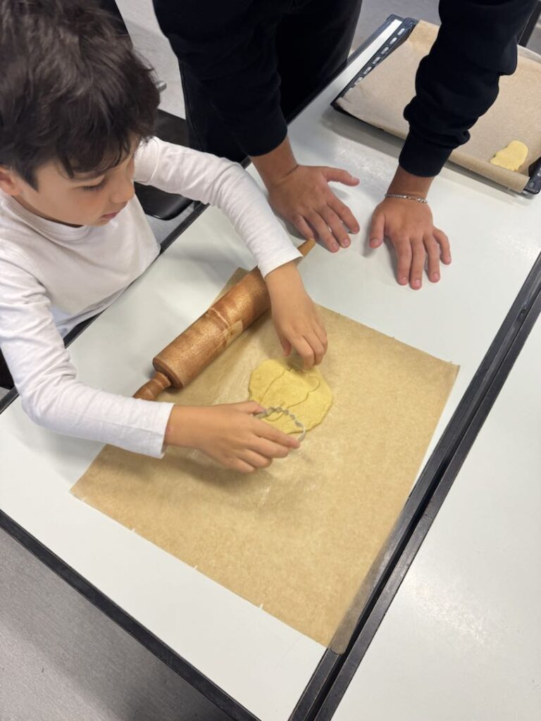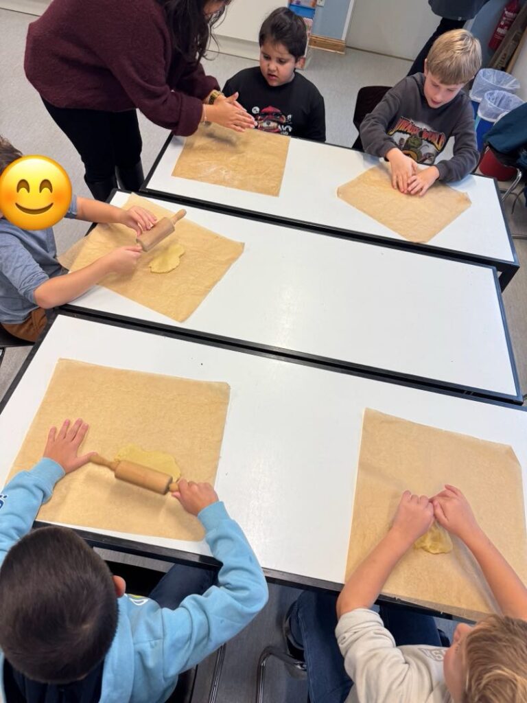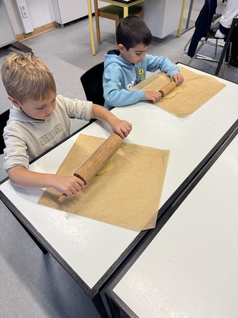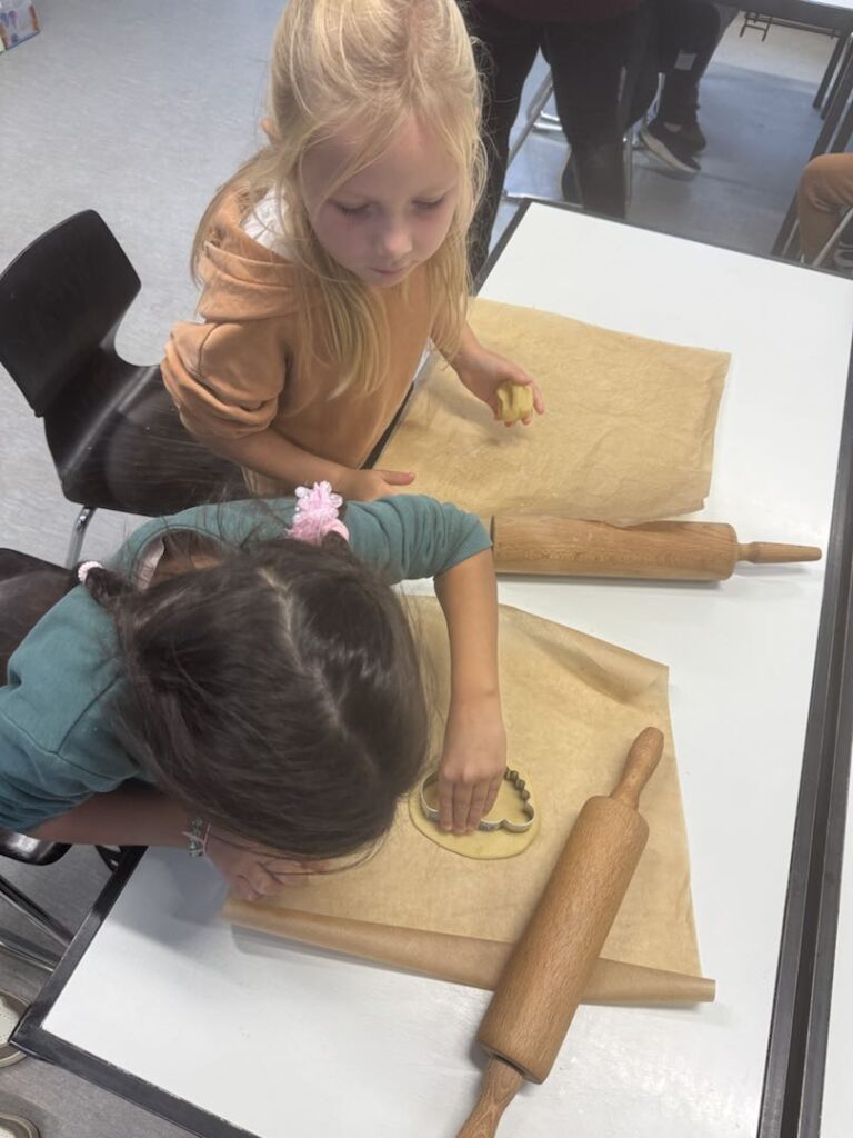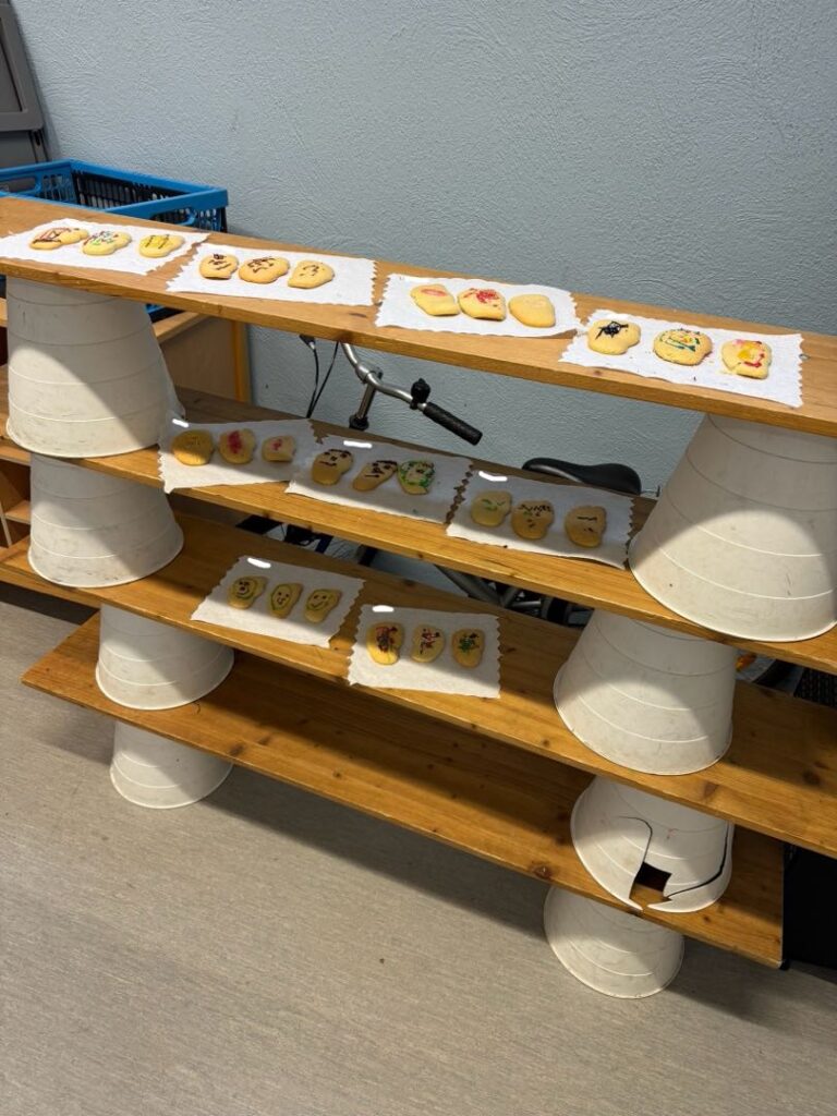 Die ersten Klassen nutzten die Gelegenheit und gemeinsam Fußkekse auszustechen, zu backen und zu verzieren.