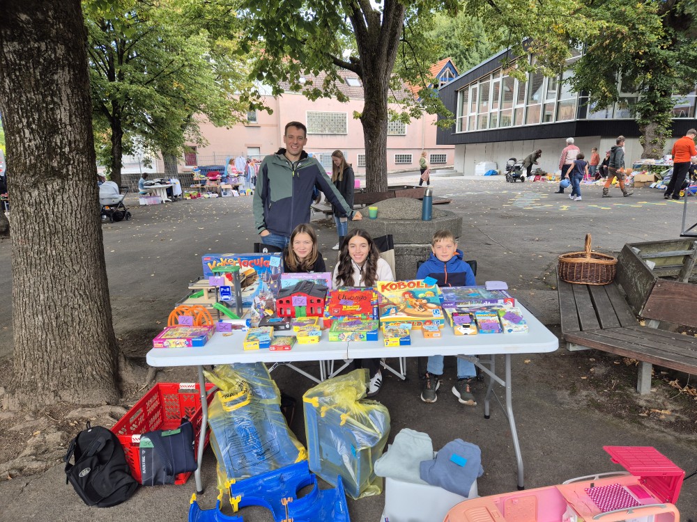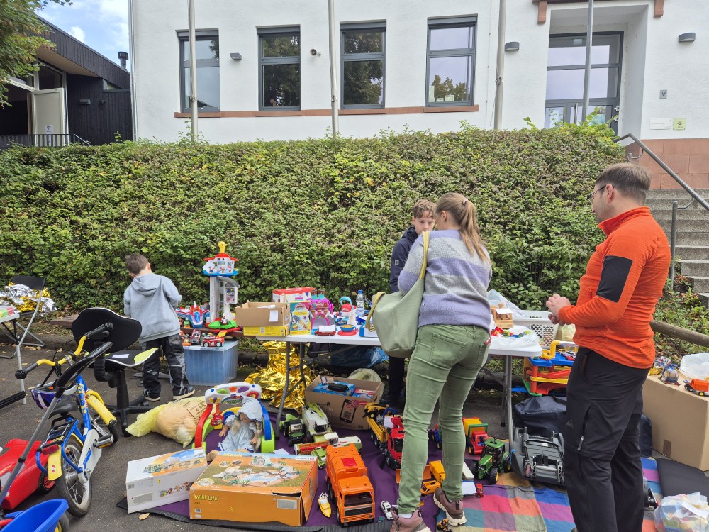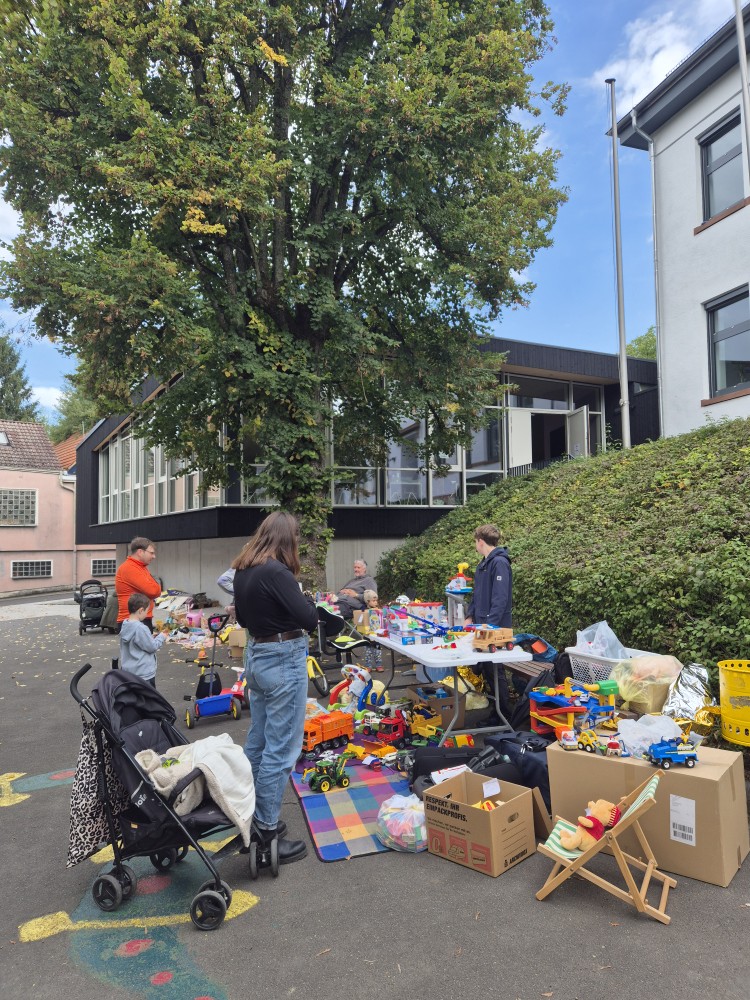 Bei angenehmer Atmosphäre konnten Kinder und Eltern gemeinsam stöbern und das ein oder andere schöne gebrauchte Spielzeug, Buch oder Kleidungsstück erwerben. Anschließend gab es die Möglichkeit bei einem Getränk und einem Stück Kuchen zu verweilen und sich auszutauschen oder auf dem Schulhof zu spielen.