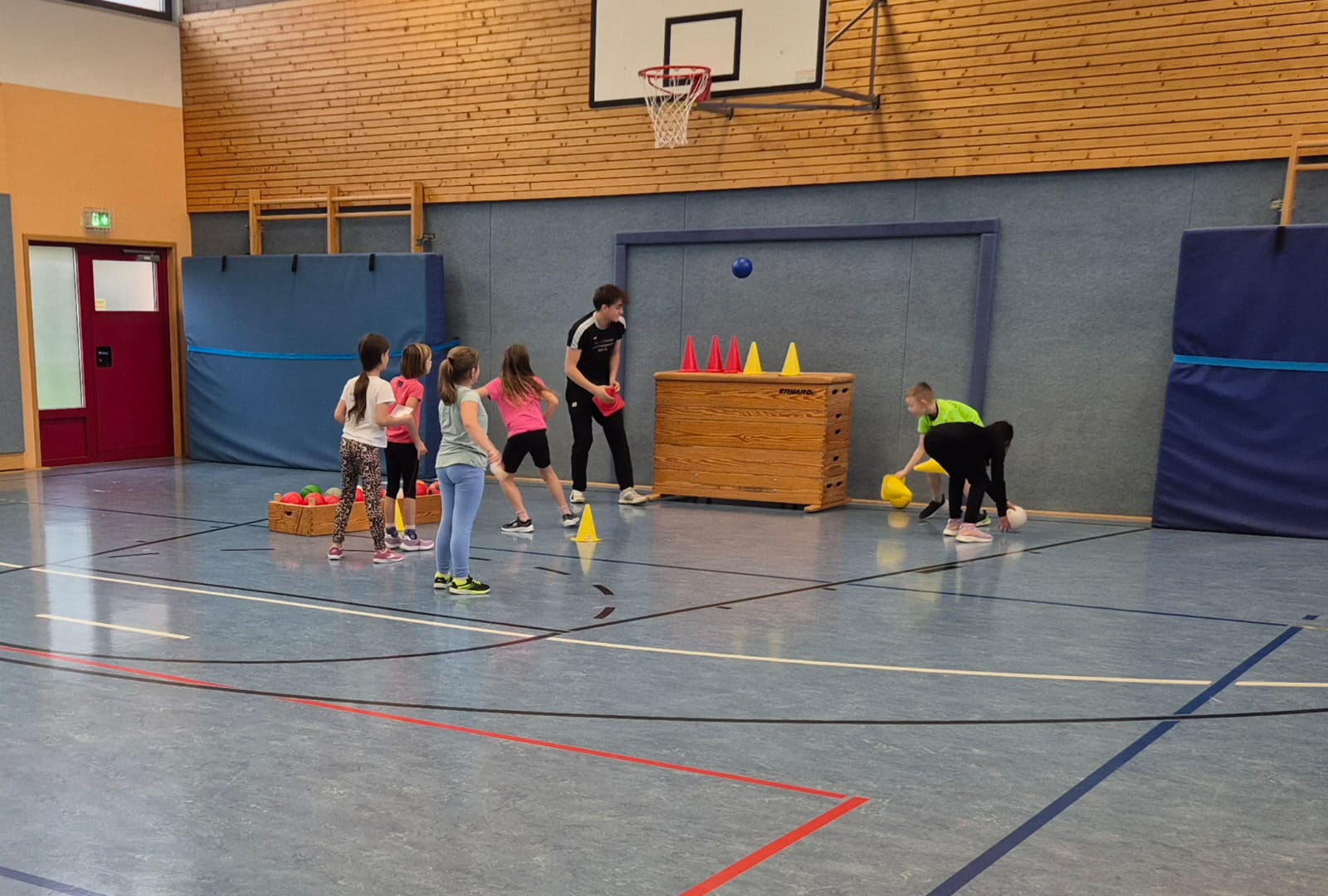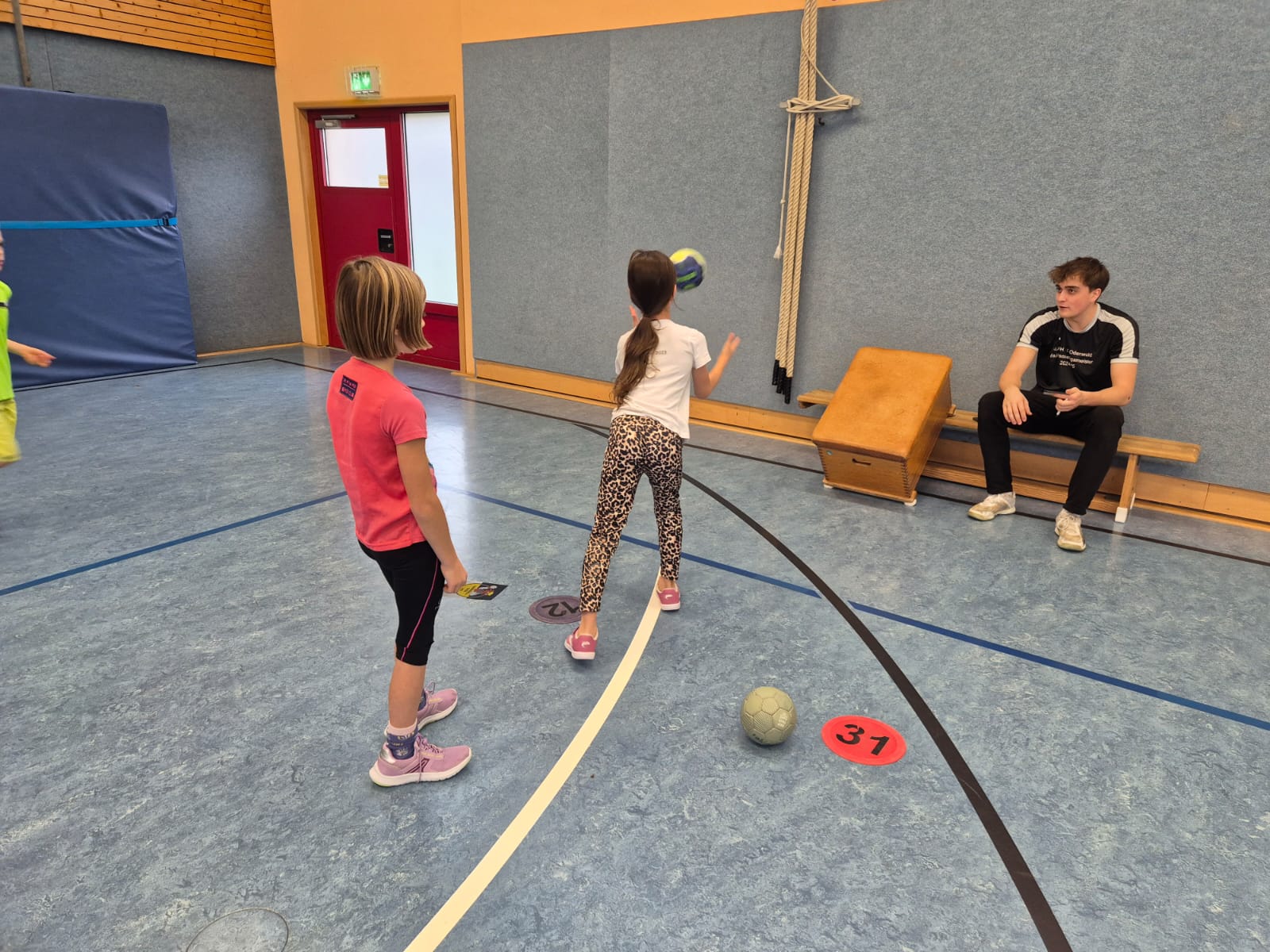 Dafür aboslvierten sie verschiedene Stationen, die ihre Koordination und Geschicklichkeit sowie die Teamarbeit forderten. Die Kinder mussten Werfen und Fangen, Hochwerfen, Laufen, Zielwerfen und Prellen. Die Aufgaben hatten das Ziel, viel Freude an der Bewegung und natürlich für das Handballspiel zu vermitteln.
