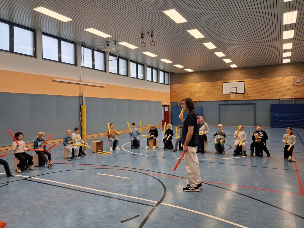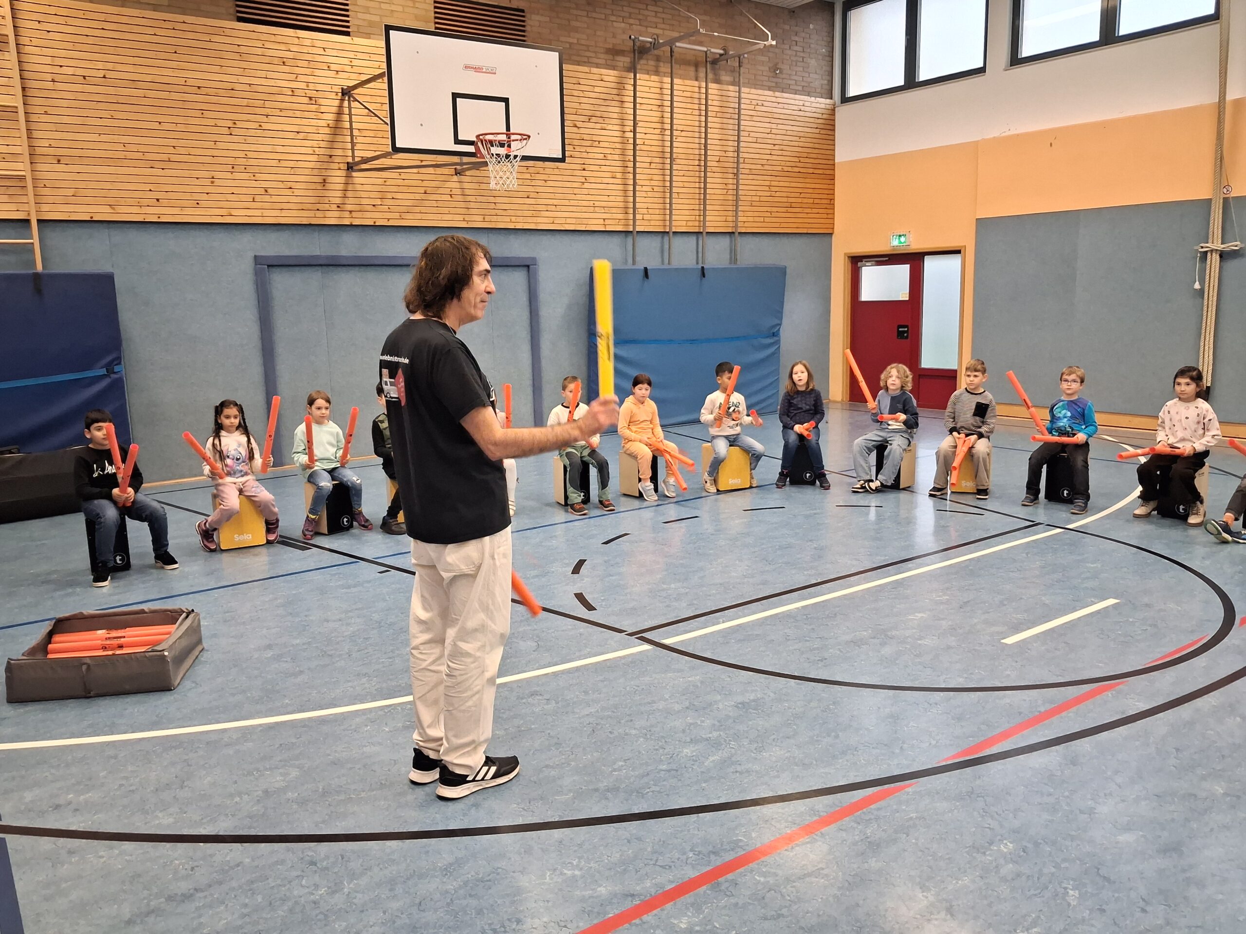 Im Anschluss kamen noch die Boohmwhackers zum Einsatz. Auch mit diesen schlugen die Kinder passend zu den mitgebrachten Liedern im Takt.